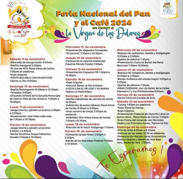 Inicio - Columnas - Ferias de Honduras - Programación de la Feria Nacional del Pan y Café La Paz 2024