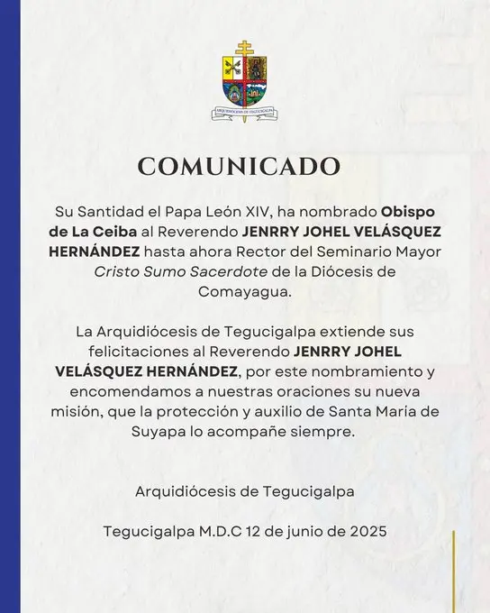-El nombramiento fue hecho por el Papa León XIV y constituye el primero que realiza el pontífice para la Iglesia hondureña desde el inicio de su pontificado.