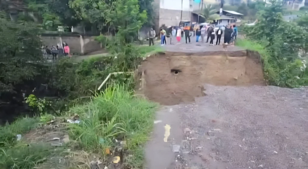 Tegucigalpa– Entre la desesperación y la necesidad, los vecinos de la colonia Reynel Fúnez, salida al sur de la capital, viven momentos de angustia luego de que la calle principal colapsara a causa de las fuertes lluvias registradas en las últimas horas, en Tegucigalpa, dejando un enorme socavón que los mantiene prácticamente incomunicados.