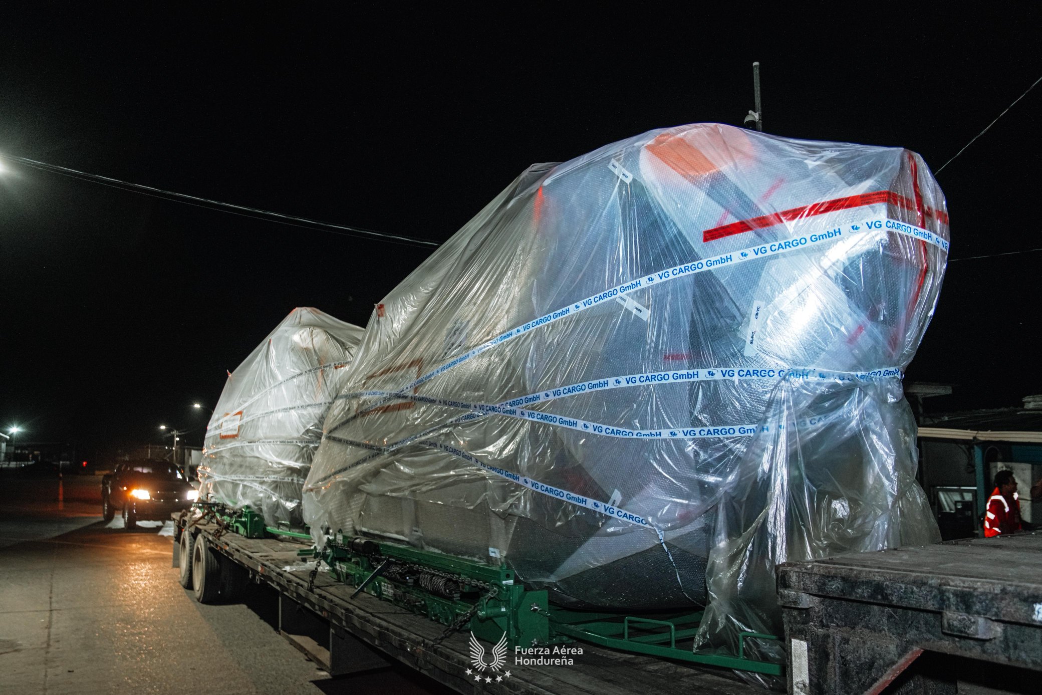Las aeronaves fueron trasladadas desde Frankfurt, Alemania, a bordo de un avión Boeing 747-400 que aterrizó en el Aeropuerto Internacional Ramón Villeda Morales, confirmaron autoridades militares.
